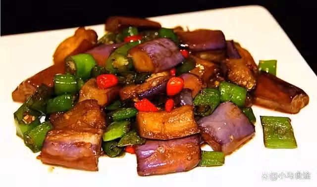 雙椒茄子,這道菜中的茄子採用油煎的手法,將茄子多餘的汁水烤出來,保留了一小部分汁水,再用雙椒爆出辣香味,喜歡吃茄子的朋友可以試試哦。