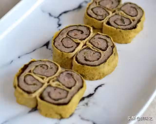 10、卷到中心處時調整兩邊的大小,一個肉卷就做好了。