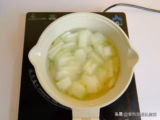 5.放冬瓜翻炒,放適量的清水,大火燒開。