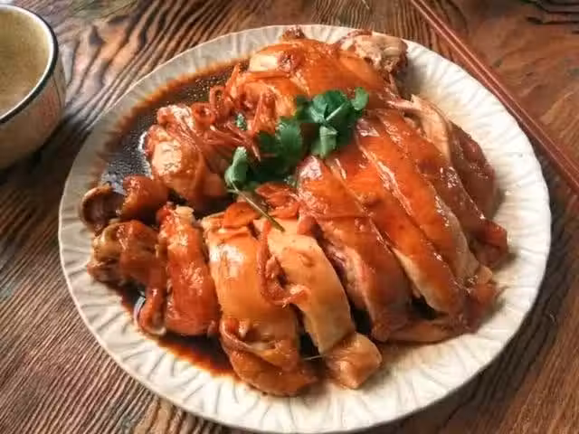 雞腿 2個 輔料:花生油 50克 香油 2湯匙 大蒜 2瓣 姜 1塊 生抽 100克 老抽 1湯匙 鹽 2克