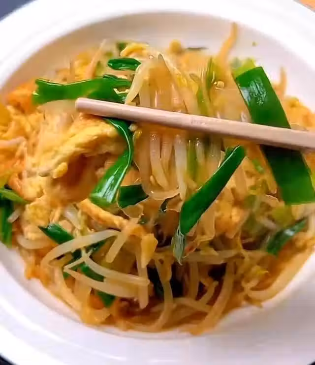 步驟二:鍋中留一點油,放入蔥段炒香,倒入豆芽,翻炒變軟,加生抽、蚝油、鹽調味,炒熟以後把雞蛋倒進去,最後加入蔥段,翻炒均勻即可出鍋。