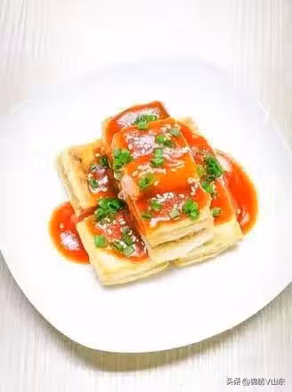 食材:內酯豆腐300g,油20g,蒜瓣10g,澱粉40g,生抽15g,辣椒醬14g
