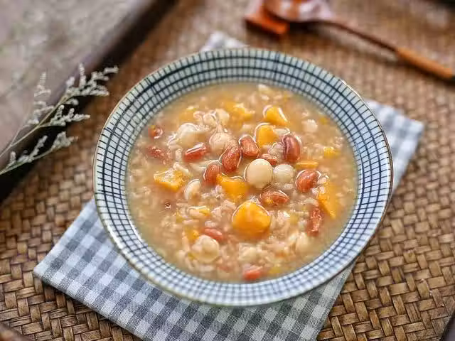 材料:紅薯2個、蓮子100克、花芸豆60克、大米120克、清水1200克