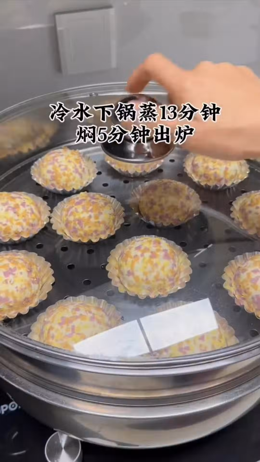 8️⃣冷水下鍋蒸13分鐘燜5分鐘出爐