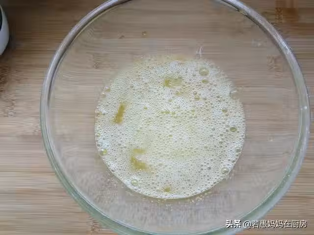 7、繼續攪打,打發至蛋清呈細膩的泡沫狀,第三次加入剩下的白砂糖。
