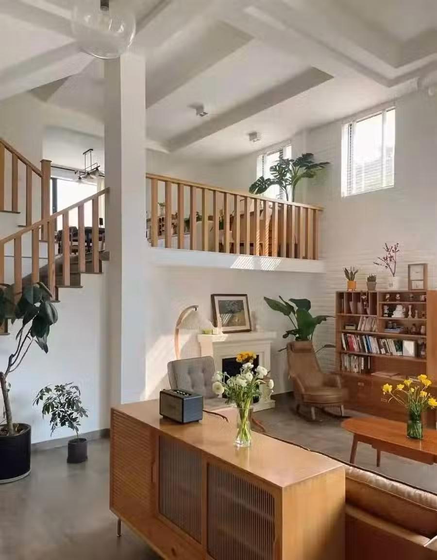 白墻原木風,還有壁爐哦,