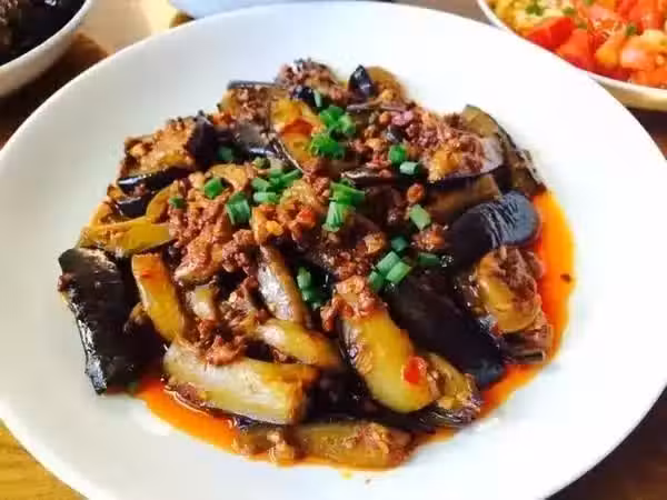 用料:長茄子;蔥;姜;蒜;豬肉;干黃醬;黃豆醬油;糖;黃酒;
