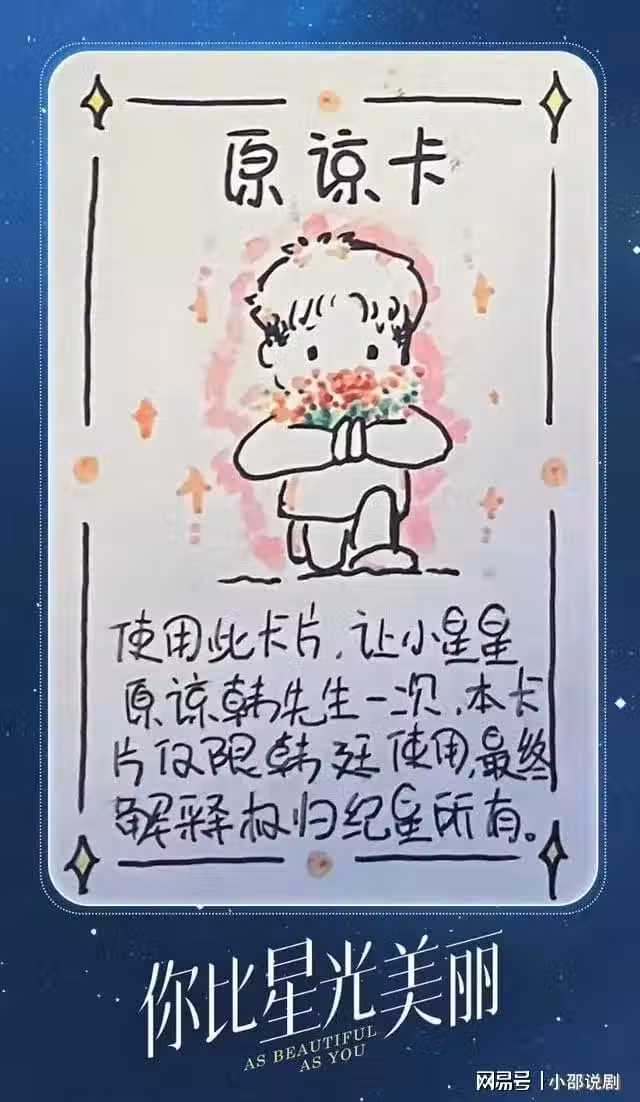 在影劇版中,鏡頭拍到了老年紀星一個人坐在躺椅上,手中握著的,就是「原諒卡」。