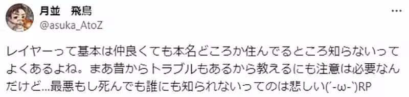 「話說如果不想被人家公開叫自己的COS名,參加網聚之前真的要準備一個『可以在公開場合被叫的暱稱』才好。」