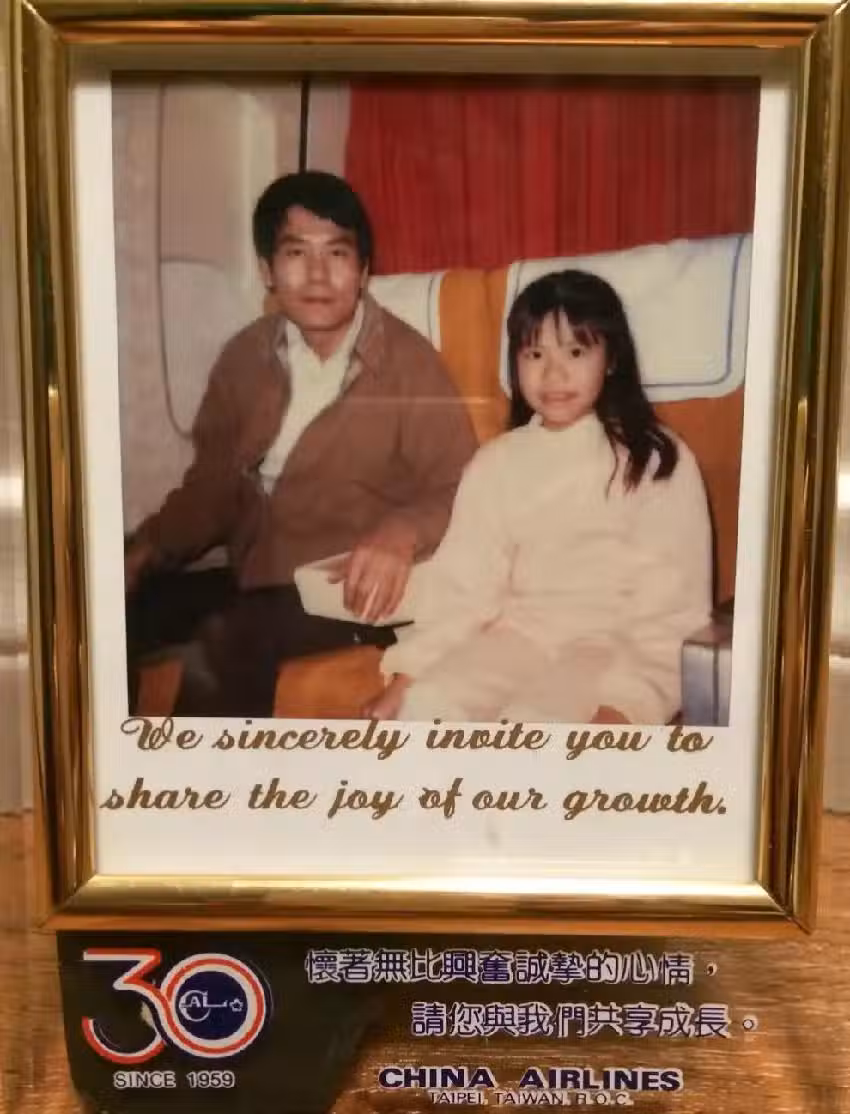 她憶起童年時光,每逢假日父親總會騎著偉士牌,帶著她到南京東路的華航大樓。