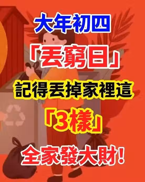 大年初四「丟窮日」 記得丟掉家裡這「3樣」全家好運連連發大財!