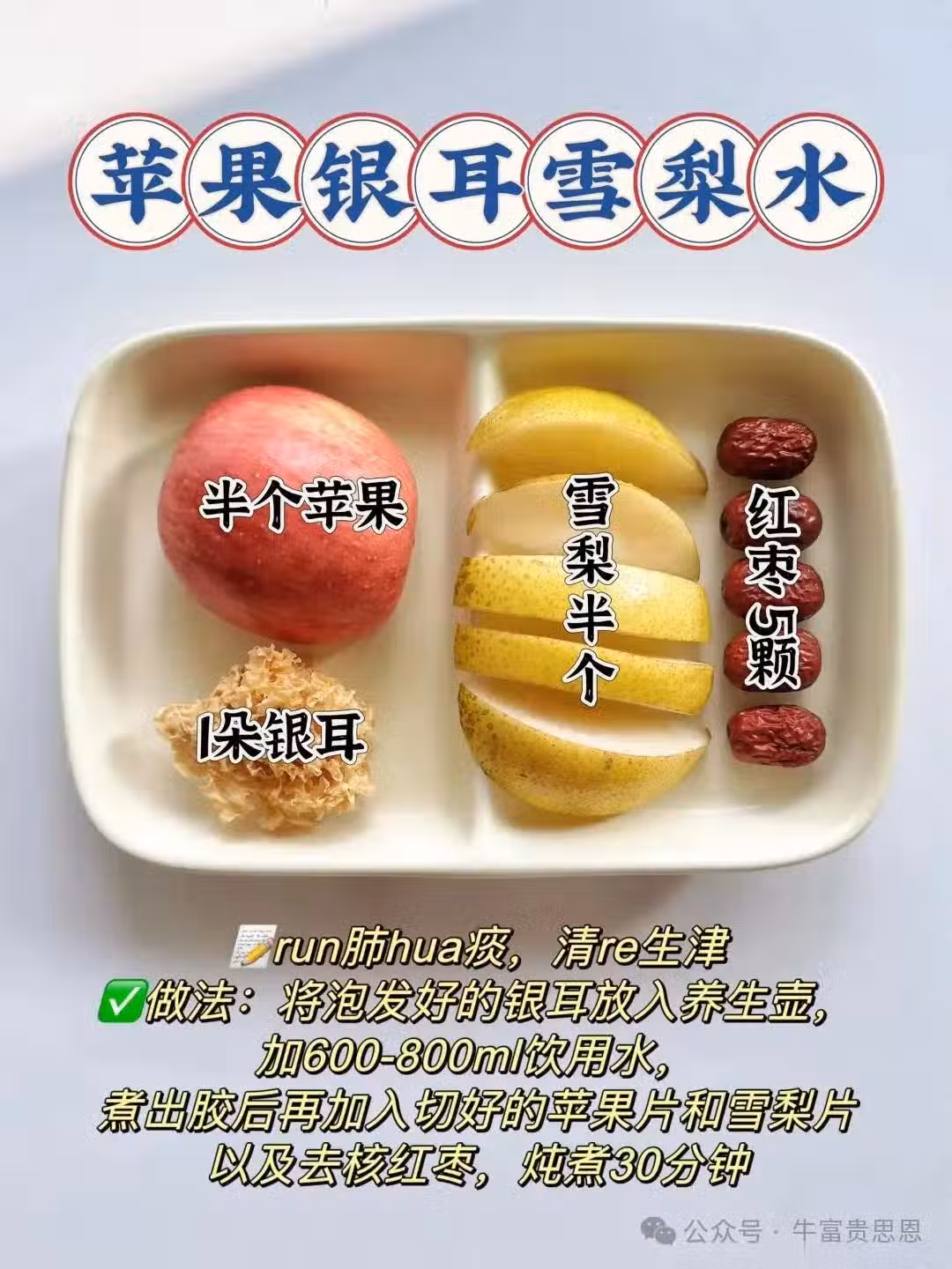 蘋果銀耳雪梨湯,好處真不少。乾燥時喝,能潤肺生津,讓嗓子不再干癢。蘋果和雪梨富含維生素,能增強免疫力。銀耳的膠質豐富,皮膚會更水潤。常喝這湯,腸胃也舒服,消化變好,身體輕鬆沒負擔,一家老小都能喝。