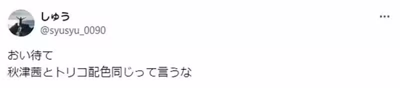 「看到秋津茜的配色被說成跟特瑞科一樣,讓我笑了。」