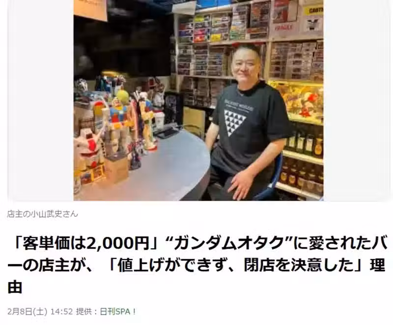 日本八卦雜誌《周刊SPA!》最近刊出了這則報導,講述一間位於日本東京都中野區,曾經上過許多電視節目的「鋼彈酒吧」即將關門的事情……