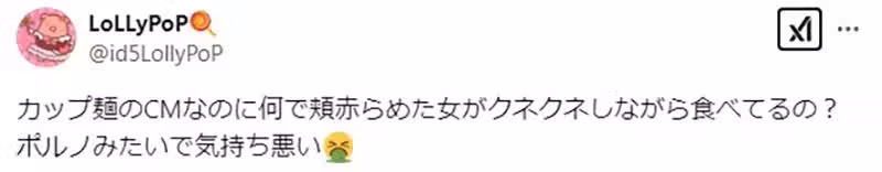「總覺得很噁心,看了反而沒有食慾了。完全是男人為男人打造的廣告。」