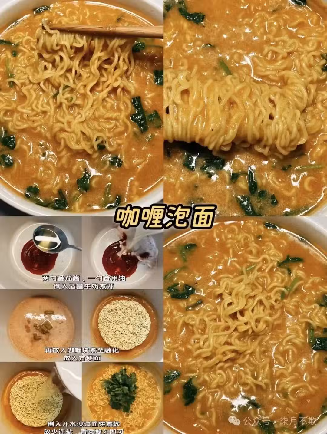 6️⃣ 愛吃海鮮和咖喱的寶子有福啦!試試這碗番茄咖喱蝦仁面! 番茄醬與油煸炒後加入牛奶煮開,放入咖喱塊融化,鮮蝦和麵餅同煮,再加入火腿丁提味。湯汁濃郁醇厚,鮮蝦鮮嫩彈牙,麵條吸滿了咖喱的香氣,一口就愛上!