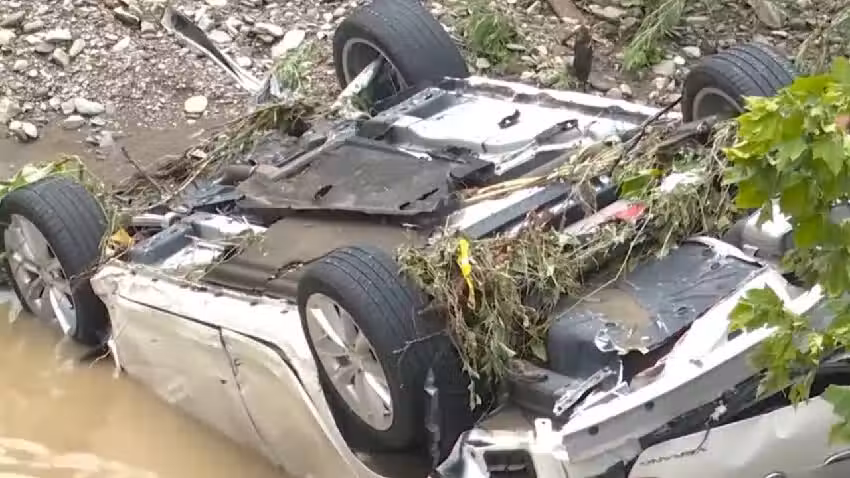 當地消防單位迅速組織搜救小組,出動無人機搜索河岸及水中沉沒車輛,以防有人受困。