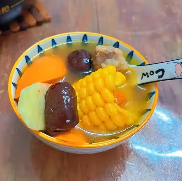 湯色金黃似蜜糖,玉米甜浸透排骨,淮山粉糯!