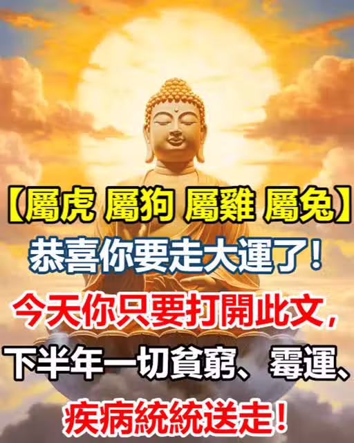 【屬虎 屬狗 屬雞 屬兔】恭喜你要走大運了!今天你只要打開此文,下半年一切貧窮、霉運、疾病統統送走~!