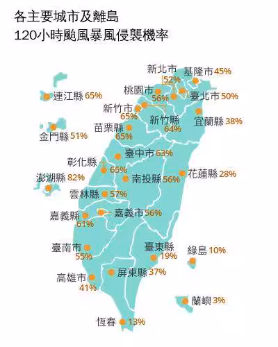 台灣颱風假機率-120小時受風暴風侵襲機率