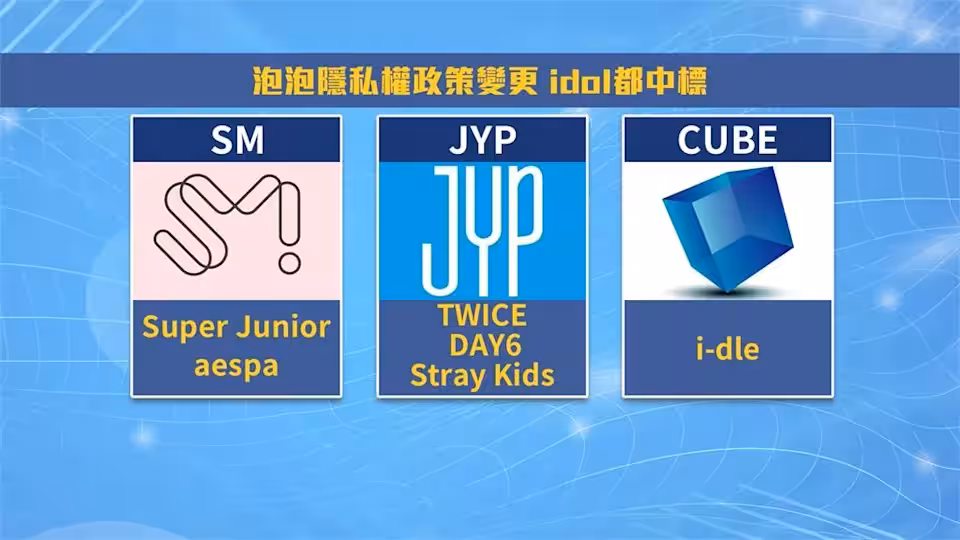 泡泡是由SM旗下子公司製作,包含SM的藝人,SUPER JUNIOR、aespa;JYP的TWICE、DAY6;到CUBE i-dle的泡泡,都已經出現隱私權變更通知。
