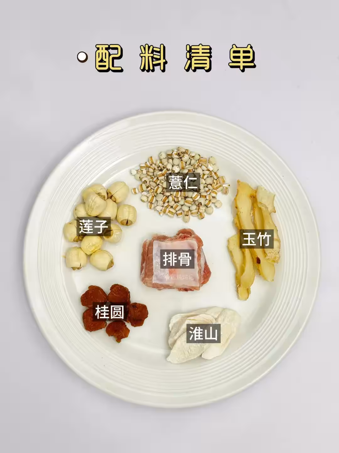 - 薏米、蓮子洗凈,蓮子可去芯(避免苦味);桂圓去殼;玉竹洗凈備用。