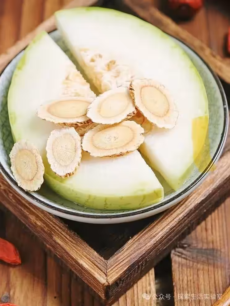 2️⃣冬瓜帶皮切小塊,和黃芪一起放入養生壺,加1500ml水;