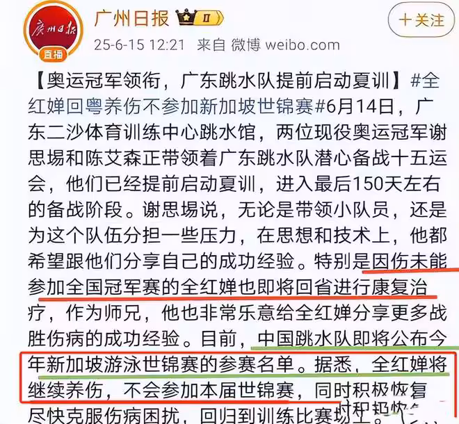 郭晶晶怎麼也沒有想到,官宣喜訊的全紅嬋,會和她走了同一條老路**