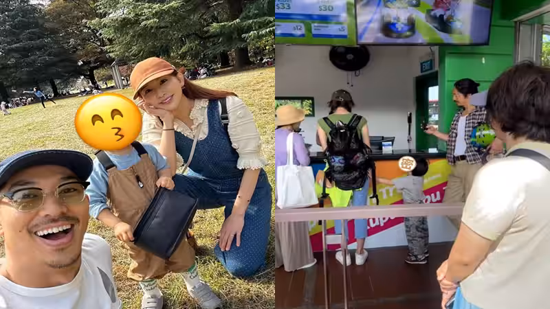 林志玲一家三口現身新加坡!AKIRA在旁偷拍老婆滿臉驕傲