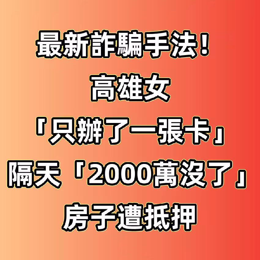 最新詐騙手法!高雄女「只辦了一張卡」...隔天「2000萬沒了」房子遭抵押!