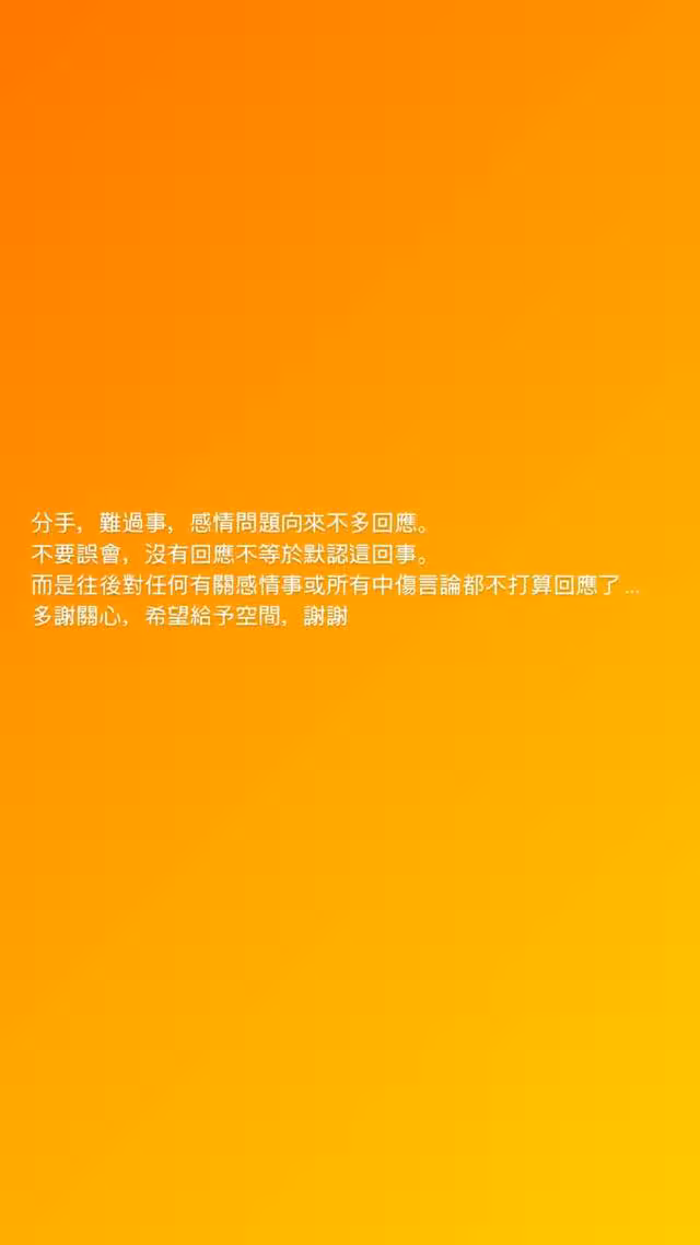 不過他並沒有直接回應是否出軌,他接著寫道:不回應不等於承認這件事。而是今後對任何感情相關事宜或所有誹謗言論都不打算回應了......謝謝關心,希望能給予空間,謝謝。