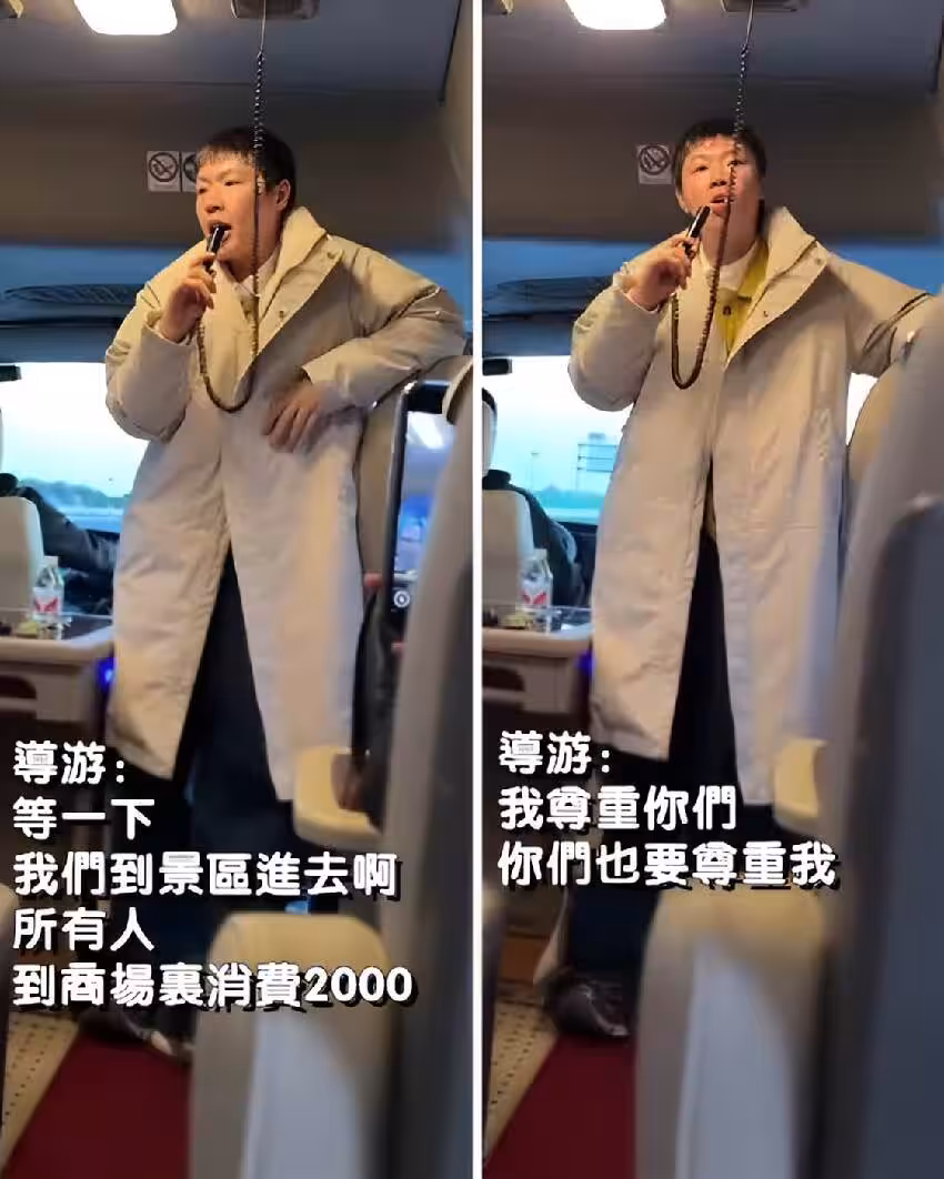 視訊中的故事令人髮指:一位導遊竟然在車上公開叫囂,逼著遊客在某個景區消費滿2000元,聲稱如果不買夠,就不允許車輛離開。