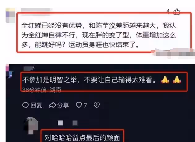 郭晶晶怎麼也沒有想到,官宣喜訊的全紅嬋,會和她走了同一條老路**
