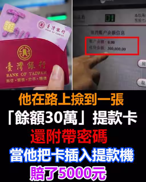 他在路上撿到一張「餘額30萬」提款卡,還附帶密碼!當他把卡[插·入]提款機,賠了5000元