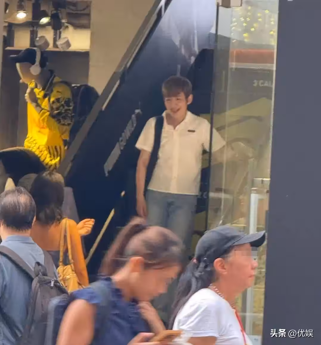 當天吳君如留著一頭亮眼的黃色短髮,搭配白色短款襯衫和牛仔闊腿褲,腳下踩雙黑色厚底皮鞋,肩上斜挎著黑色大包,一身穿搭休閒又帶點潮味,走在電梯上身姿挺拔,舉手投足間全是年輕人的活力。