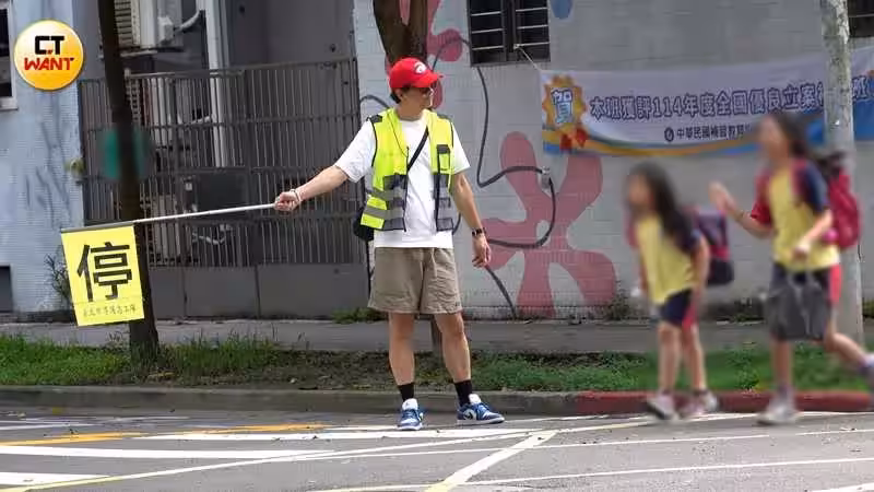 全聯先生當導護爸爸 全神貫注守護孩子上學路