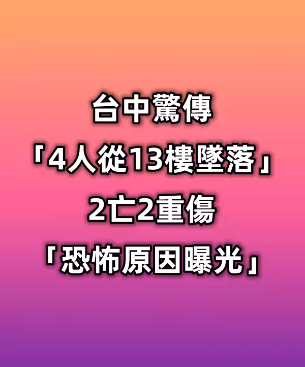 突發/台中驚傳「4人從13樓墜落」!2亡2重傷「恐怖原因曝光...」