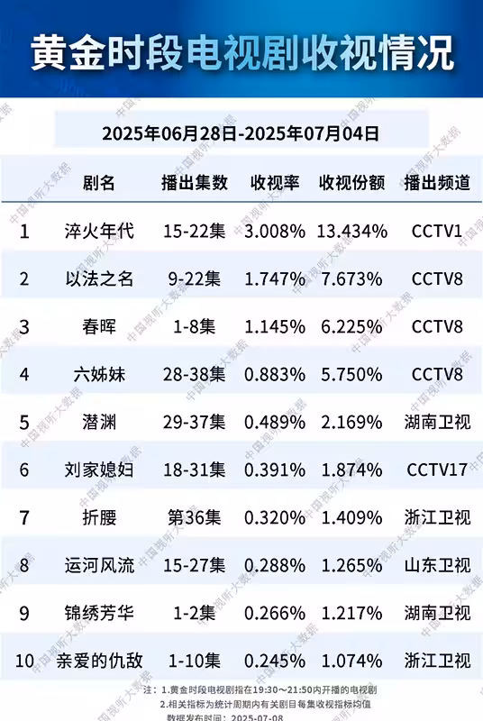 可能,觀眾們認為的收視率理想,是湖南衛視憑藉這部電視劇,直接收視率在衛視平台當中奪冠吧。可是,在CVB的數據平台當中,湖南衛視的電視劇收視率奪冠,是較為少見的事情。當然,剛剛結束首播的《潛淵》則是一個反例,它確實憑藉自身諜戰劇的優勢,讓湖南衛視在各大衛視平台當中連續奪冠了多次。