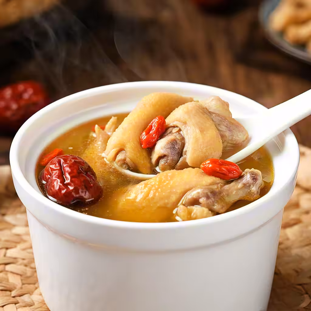 雞肉500克、五指毛桃30克、茯苓15克、芡實15克、紅棗3顆、枸杞少許。