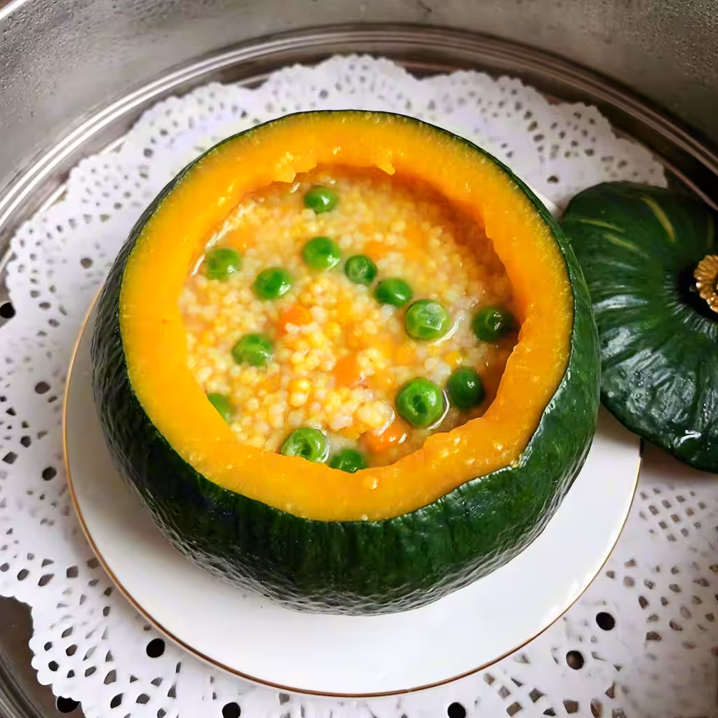 【功效】南瓜富含果膠,保護胃黏膜;小米助消化,適合腸胃虛弱人群。