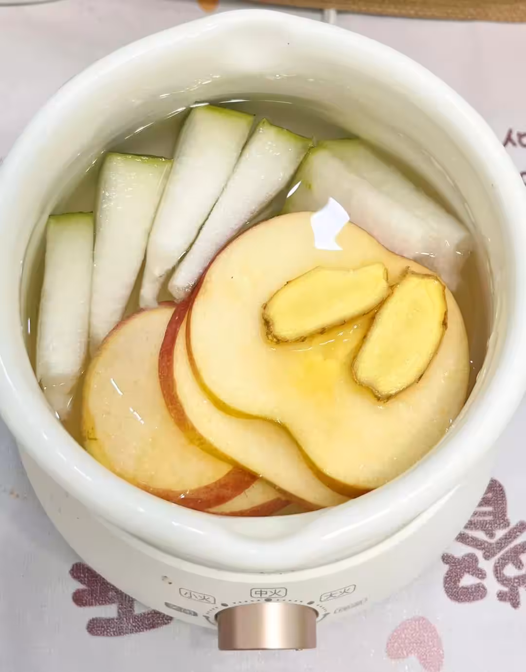 ✅冬瓜能清理腎臟、四肢多餘的水分,利水消腫,煮熟的蘋果對脾胃好,生薑為陽,有助發汗。