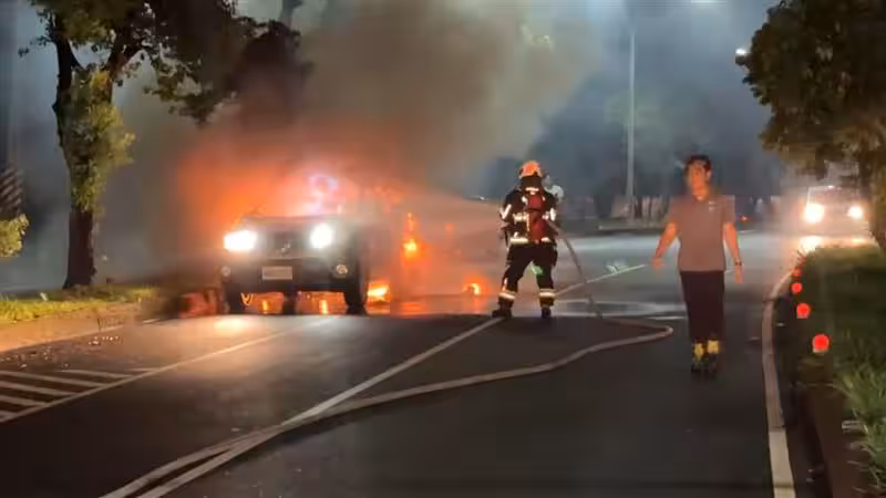 快訊/台東發生火燒車意外!大火吞噬整台休旅車 縣議員急逃生