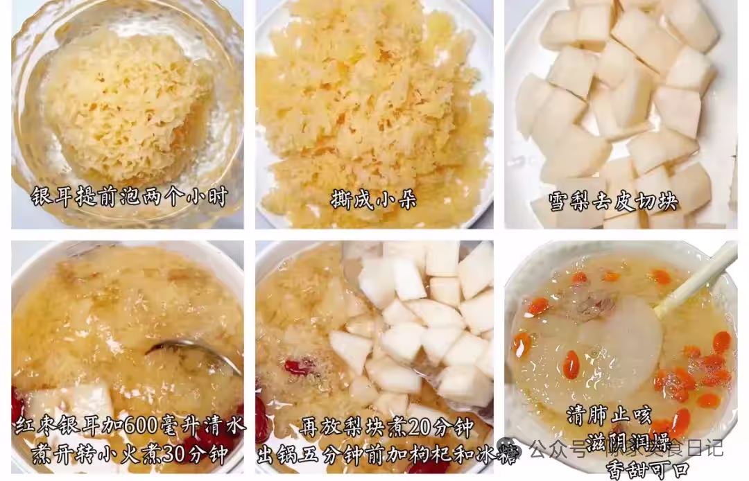 雪梨選鴨梨或皇冠梨,汁水多更潤;冰糖換成蜂蜜要等羹涼到40℃再加,不然破壞營養;當天煮當天喝,別放隔夜