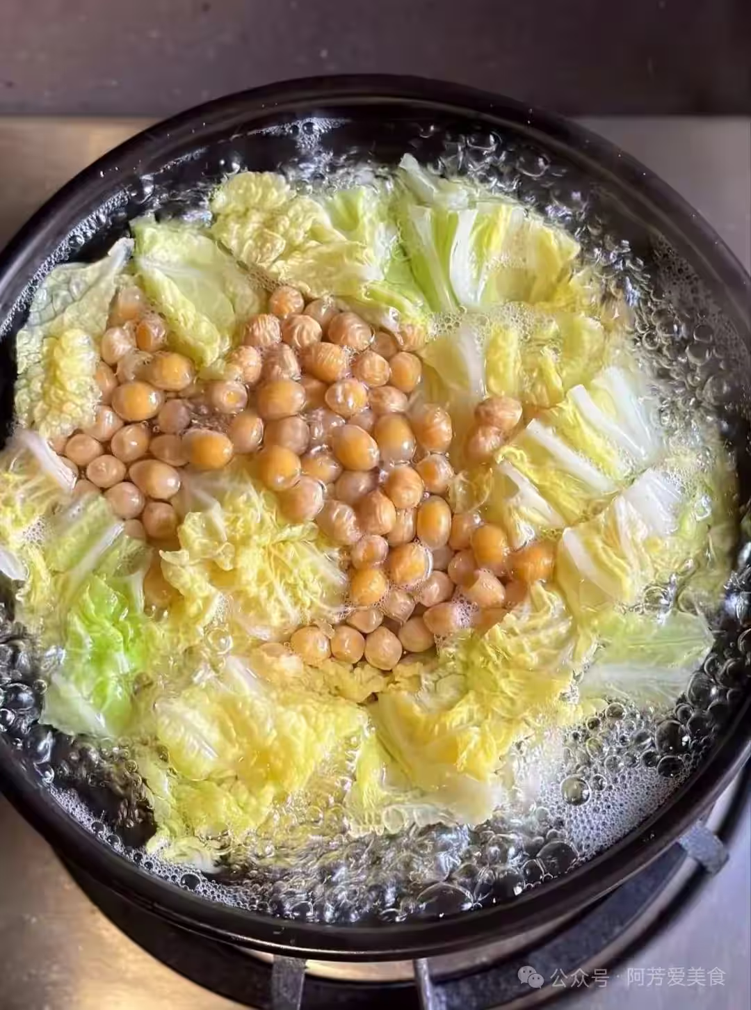 食材:干黃豆一小把(約50克)、新鮮白菜葉三四片。