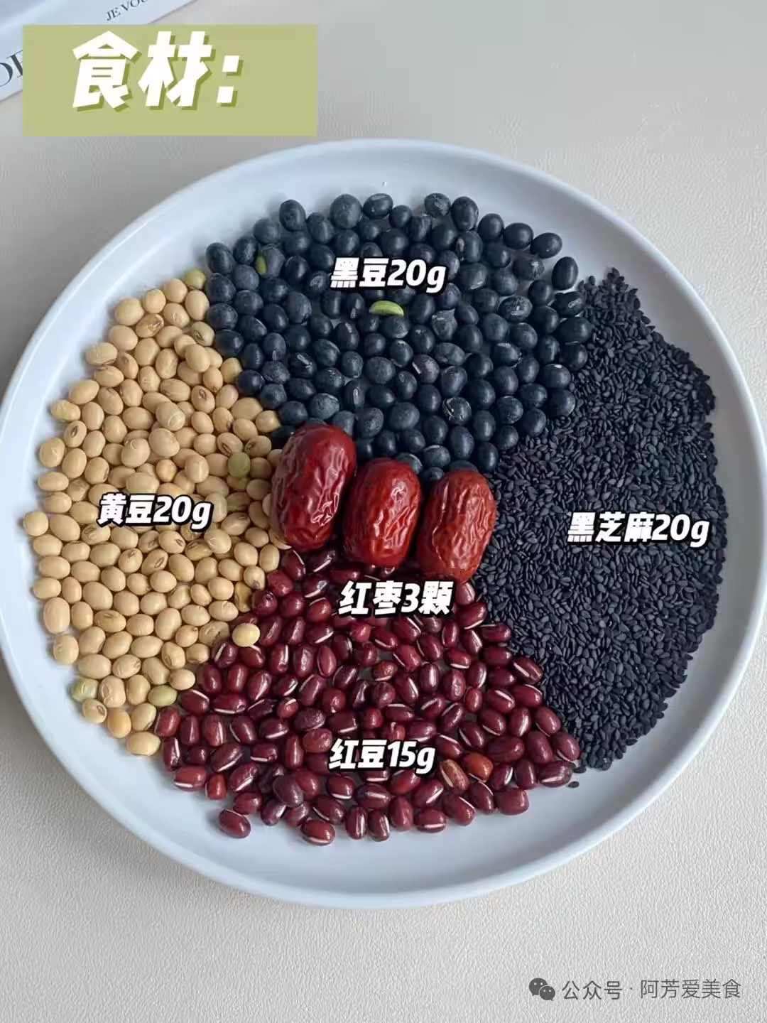 食材:黑豆20g、黃豆20g、紅豆15g、紅棗3顆去核。