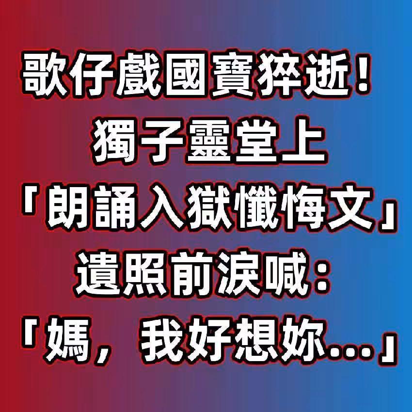 歌仔戲國寶猝逝!獨子靈堂上「朗誦入獄懺悔文...」 遺照前淚喊:「媽,我好想你.....」