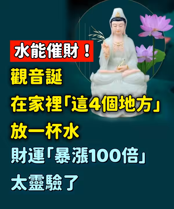 水能催財!觀音誕在家裡「這4個地方」放一杯水,財運「暴漲100倍」太靈驗了