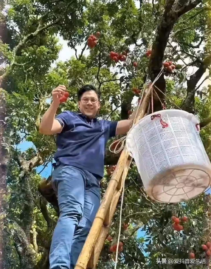 除了全進華,另一位公眾人物霍啟剛也加入了采荔枝的行列。他是郭晶晶的丈夫,家庭條件優越,日常生活中可能很少有爬樹的機會,童年時光似乎也與爬樹的樂趣無緣。不過,他不以明星的身份自居,努力模仿全進華,嘗試攀樹摘荔枝。雖然他顯然有些吃力,最終還是找來了梯子借力而為。
