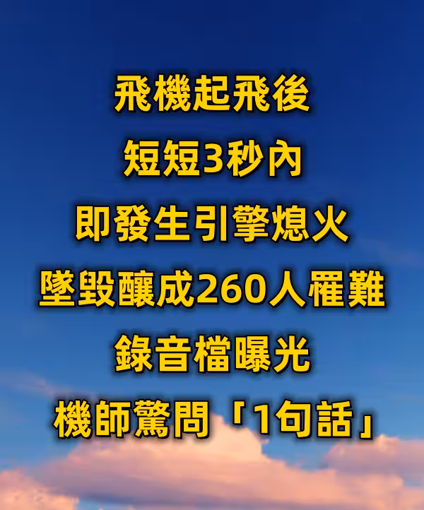 快訊/飛機起飛後短短3秒內即發生引擎熄火,墜毀釀成260人罹難,錄音檔曝光 機師驚問「1句話」