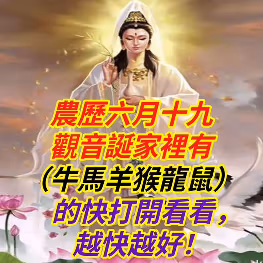 農曆六月十九【觀音誕】家裡有(牛馬羊猴龍鼠)的快打開看看,越快越好